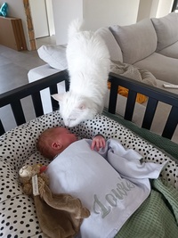 Sinds eind juni zijn Pepper en Snow ook 'broertjes' geworden van Lowie. Vooral Snow is heel erg benieuwd naar deze aanwinst in ons gezin.“