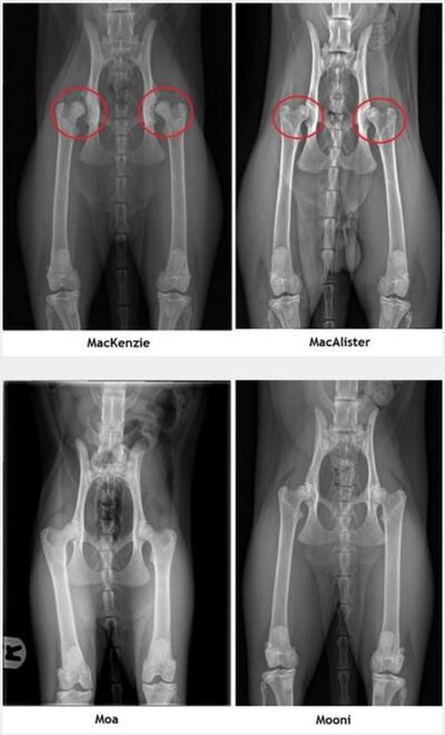 Toen bij MacKenzie echter HD graad 3 werd vastgesteld, hebben we alle andere eigenaren geïnfomeerd en zijn alle nestgenoten op onze kosten getest. MacAlister bleek als enige ook HD te hebben: graad 2 beiderzijds. Hierdoor vielen onze plannen voor een nestje met hem in het water.