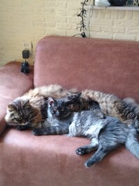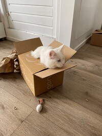 Omdat Snow wat jonger is dan onze andere katten was het in het begin wel af en toe heel druk. Hij wou heel graag spelen en de andere wilden graag op hun gemak slapen. Dat botste af en toe wel eens.