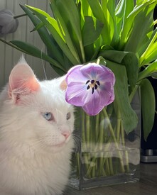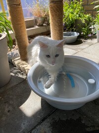 Ze leek aanvankelijk niet zo knuffelig, maar o jee, dat is inmiddels wel veranderd. Gevoelig lief maatje, maar wel eentje met pit en karakter en ze weet wie ze is. Gek op stromend water, haar zwemteil en het slopen van drinkfonteintjes. Genietend van elk zonnestraaltje. Ze is open en toegankelijk naar vreemden en kinderen.