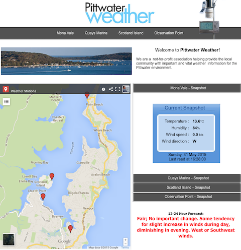 On 5th May we brought www.pittwaterweather.com online to replace the