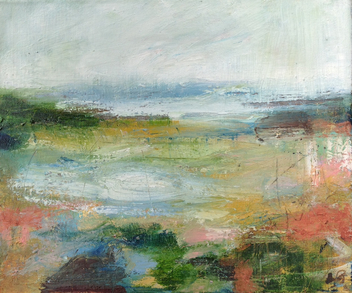 "Coast Memory with Pink", oil, wax, graphite - small works on paper