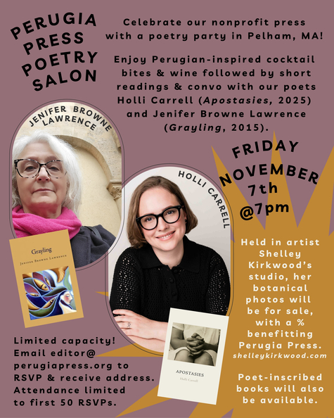 To reserve a spot, email editor@perugiapress.org & we'll send the address.