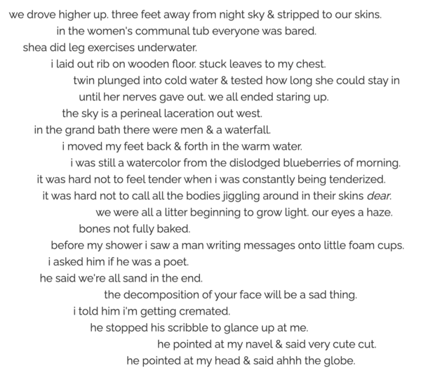 “desert room #1 (ten thousand waves spa)” from fox woman get out! by India González (BOA Editions, 2023).