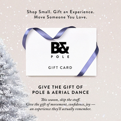 Our Holiday Gift Guide is here with great ideas for the pole or aerial lover in your life — plus how you can earn a free class and save 20% on B&P merch when you shop this season.