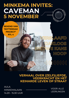 Op woensdag 5 november trappen we Minkema Invites af met "Caveman 010". Patrick van der Jagt (zijn echte naam) is een Nederlandse ex-dakloze en ex-verslaafde die bekend is geworden door het televisieprogramma "Het Rotterdam Project", een aantal jaren geleden gepresenteerd door Beau van Erven Dorens.