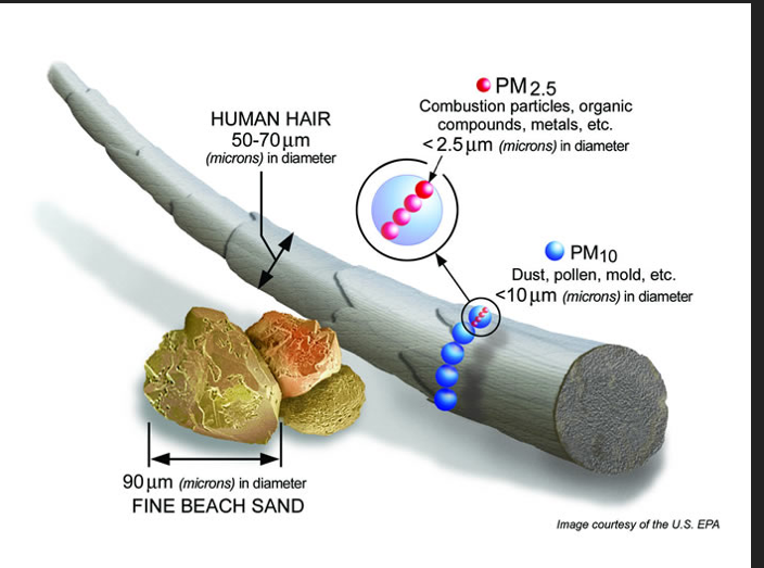 LA Times, microscopic aerosols motes “are able to infiltrate the tiniest compartments in the lungs and pass readily into the bloodstream” – where they can migrate to inflame tissues and cells. Particles in the lower size range called for by the