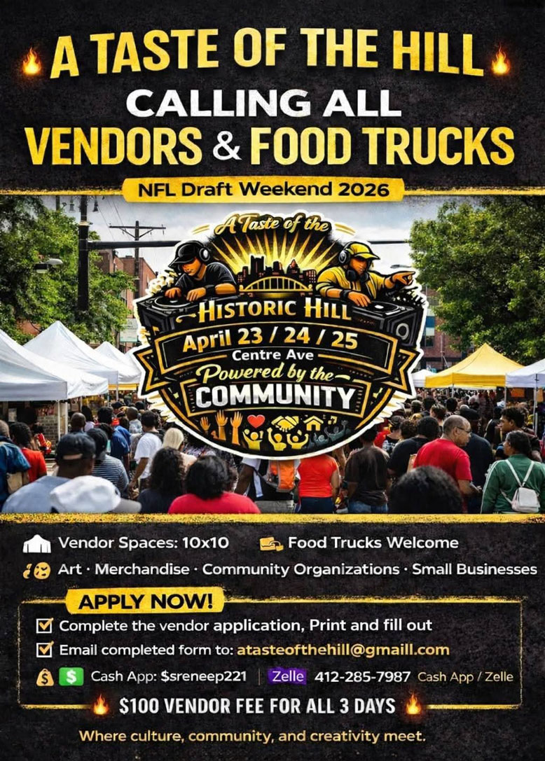 A TASTE OF THE HILL: CALLING ALL VENDORS & FOOD TRUCKS FOR NFL DRAFT WEEKEND 2026! DEADLINE TO SUBMIT VENDOR FORM IS APRIL 20, 2026!