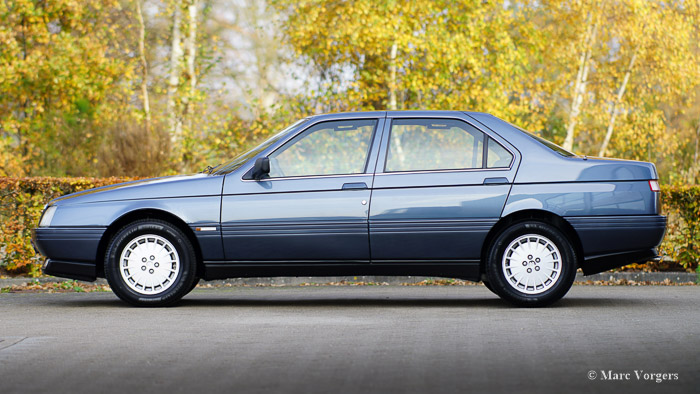 Alfa Romeo 164 3.0 V6, jaar 1990 (eerste registratie 16 juli 1990). Exterieur uitgevoerd in blauwgrijs metallic gecombineerd met een blauw stoffen (velours) interieur, afgewerkt met donkerblauw tapijt en zwarte matten. Vanaf nieuw heeft de auto slechts 72.337 kilometer gereden. De originele fabrieksboekjes zijn aanwezig; het onderhoudsboekje is ingevuld en gestempeld vanaf dag één tot en met de laatste onderhoudsbeurt op 15 oktober 2024. De onderhoudsbeurt bij 67.960 kilometer omvatte de vervanging van de distributieriem. Deze fraaie Alfa Romeo 164 3.0 V6 verkeert in een uitstekende en volledig originele staat; verzamelaarskwaliteit! Zo'n perfect onderhouden Alfa Romeo 164 3.0 V6 in uitstekende conditie is zeldzaam. De Alfa Romeo 164 3.0 V6 is de meest gevierde versie, aangedreven door de legendarische Busso-motor, bekend om zijn soepele vermogensafgifte en prachtige uitlaatgeluid. Meer informatie op de website.