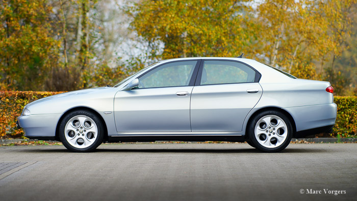 Alfa Romeo 166 Super 3.0 V6, jaar 2000 (eerste registratie 27 januari 2000). Carrosseriekleur Azzurro Nuvola 414B. Het betreft een prachtige zilver metallic lak met parelmoereffect, de lak vertoont een lichtgroene, lichtblauwe of violette gloed afhankelijk van de lichtinval. Het interieur is uitgevoerd in zwart leder gecombineerd met donkergrijs tapijt en zwarte matten. Deze prachtige Alfa Romeo 166 Super 3.0 V6 is nieuw verkocht in Nederland. Vanaf nieuw heeft deze super originele auto slechts 61.234 kilometer gereden. De auto verkeert in een prachtige en uitstekende originele staat! De auto is door de jaren heen perfect onderhouden; de laatste onderhoudsbeurt was in mei 2024 bij 60.100 kilometer. Toen is ook de distributieriem vernieuwd. Een van de meest aansprekende versies was de 3.0 V6 24V, aangedreven door de magnifieke Busso-motor. Dit super originele exemplaar met een lage kilometerstand is interessant voor verzamelaars en liefhebbers die op zoek zijn naar de beste kwaliteit. Meer informatie op de website.