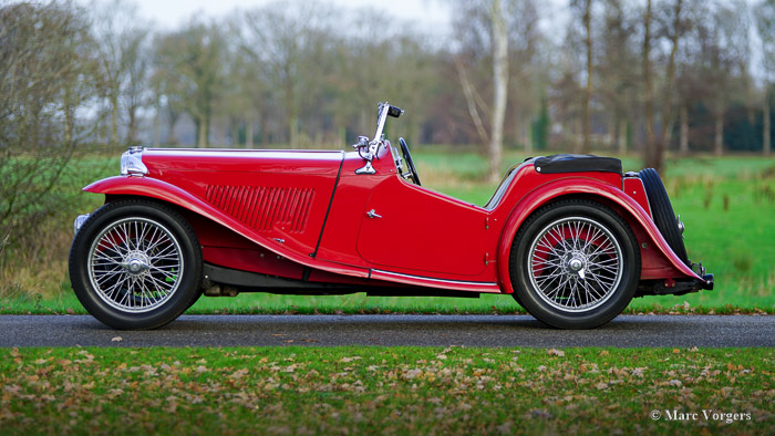 MG TA, bouwjaar 1936. Uitgevoerd in prachtig rood met een beige lederen interieur, belichaamt deze MG TA het plezier en genot dat de auto zijn eigenaren in de jaren 30 bracht, en de selecte liefhebbers die de MG TA sindsdien hebben gekoesterd. Deze prachtige MG TA verkeert in zeer goede staat en biedt die bijzondere ‘pre-war’rijervaring. Dit prachtige exemplaar is in het verleden uitgebreid gerestaureerd en de auto toont alle originele details. De auto vertoont lichte gebruikssporen, precies het juiste patina voor een vooroorlogse auto. De MG TA is voorzien van 19-inch spaakwielen met Dunlop-banden, een hoofdschakelaar, een extra koplamp (driving lamp), een aangepaste stuurinrichting voor een lichtere en preciezere besturing, een extra temperatuurmeter op de stuurkolom, de originele claxon en de originele dynamo. Verder wordt de auto geleverd met weeruitrusting (kapframe, soft-top, insteek zijruiten en afdekhoes) van zwart mohair, een originele gereedschapset en een bougiehouder met vier reservebougies onder de motorkap. Dit is een zeer goede, super originele en complete MG TA in een prachtige kleurencombinatie! Meer informatie op de website.