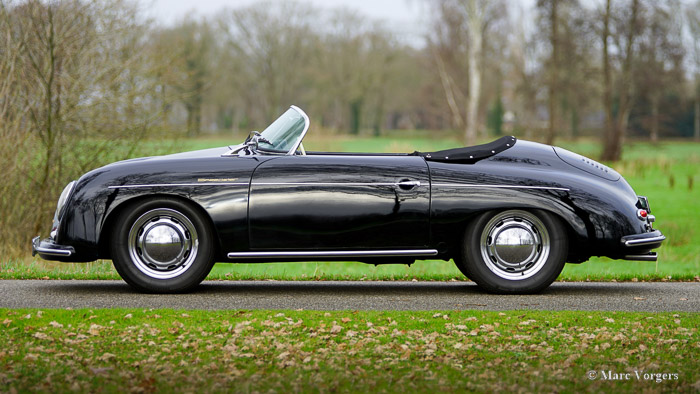 356 Speedster recreatie op VW-chassis uit 1965. Uitgevoerd in ‘triple black’ met zwarte carrosserie, een zwart interieur en een zwarte soft-top, ziet deze prachtige recreatie van de 356 Speedster er verbluffend uit! Deze schitterende Speedster recreatie is gebouwd op een ingekort chassis van een Volkswagen Kever uit 1965. De carrosserie van deze recreatie is exact gevormd naar de originele 356 A Speedster (met de gebogen voorruit) die Porsche tussen 1955 en 1959 produceerde en is gemaakt van glasvezelversterkte kunststof (GRP) in plaats van metaal. Alle details van het exterieur en interieur komen overeen met het origineel. Er zijn ongeveer 4144 originele Porsche 356 Speedsters (waarvan 2910 A-modellen) gebouwd door Porsche. Deze auto's zijn zeldzaam, zeer gewild en daardoor erg duur. Een goede replica is echter betaalbaar en kan voor velen een ideaal alternatief zijn om te genieten van de schoonheid, stijl en bijzondere rijervaring van een 356 Speedster! Meer informatie op de website.
