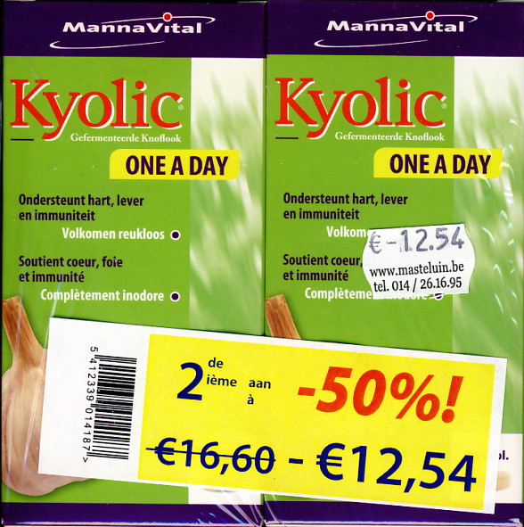 Kyolic one a day promo duopack 2de aan halve prijs [30 tabl] (ex 11/2019) 16,6€