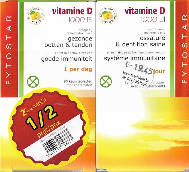 Vitamine D - promo duopack met tweede aan halve prijs [2 X 90 kauwtabl] (ex 07/2017) 25,9€