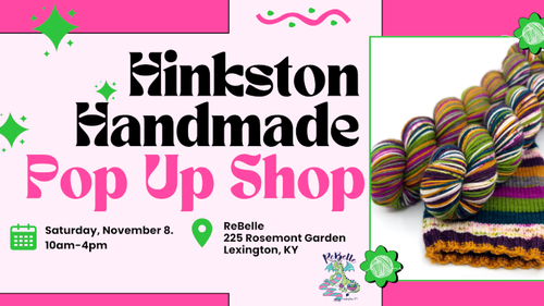 Hinkston Handmade, formerly Rock and Strings Creations, will be taking over the classroom of ReBelle with a selection of her wonderful handdyed self-striping yarns. Many of you already know and love Erin, the dyer behind these amazing yarns, but for those of you who haven't yet discovered her yarns- you are in for a treat. Erin finds inspiration in the world around her- her self striping yarns are dyed to tell a story and after almost 20 years, she is a master at it.