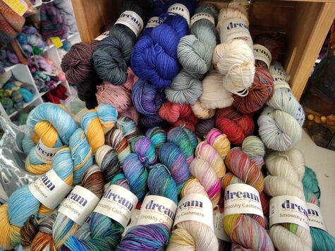Surprise! We got a little bit of Dream In Color Smooshy Cashmere. This yarn really lives up to it's name. A 3-ply blend of 70% superwash merino, 20% cashmere, and 10% nylon, Smooshy Cashmere begs to be squished and bounces right back. With 400 yards per 113g skein, Smooshy Cashmere is classified as a fingering weight, but would work for some light sport weight projects as well. Some patterns that work great with just one skein of Smooshy Cashmere are Starshower (cowl), Willow Cowl, Lightweight Hipster (shawl), Easy Goes It (shawl), Newborn Vertebrae, Podster Gloves, and of course, the beloved Sophie Scarf. |