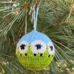 Knit this sweet little ornament for your Christmas tree, or your rear view mirror. Sheep Balls by Dana Carruth can be found in so many places as year round reminders of our beloved friends (and supplier of wool,) the sheep. It takes a little finagling to knit this onto a ball and you have to use dpn’s for the project, but it’s well worth it!