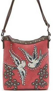 Western Design Birds Accent Bag is made of faux leather in a soft poppy