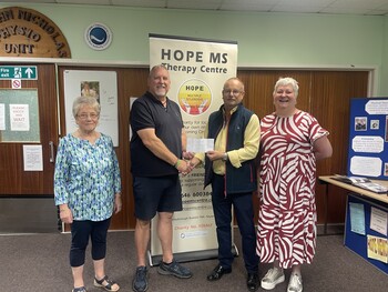 Following a highly successful BBQ held during the summer the worshipful master of Neyland Lodge W. Bro Gary Thomas visited the Hope Therapy Centre in Neyland to present a cheque for £600 to the centre staff.