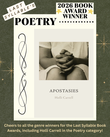 Check out Holli's continuing book tour for Apostasies below, as well as an announcement of her being named the winner of the 2026 Last Syllable Award in Poetry. Congratulations, Holli!