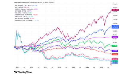 In gold terms: NDX up 4.7%, SPX down 27.6%, CSHPI down 50.2%.