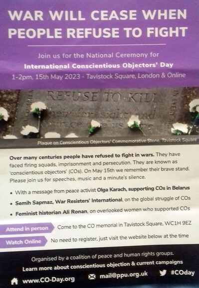On 15 May, support conscientious objectors & other