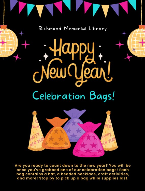 They're back! Our very popular Celebration Bags are ready for pick up, while supplies last. Each bag contains a hat, a beaded necklace, craft activities, and more ... all to ring in the new year. Happy 2026!