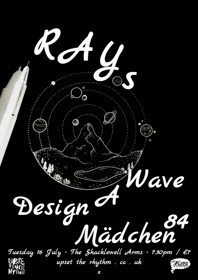In support we have Design A Wave, now a duo with Rosie from Ravioli Me Away on board, plus an unclassifiable scramble of sound from Maedchen 84! See you there, tickets for all of these events are available in advance and on the door.