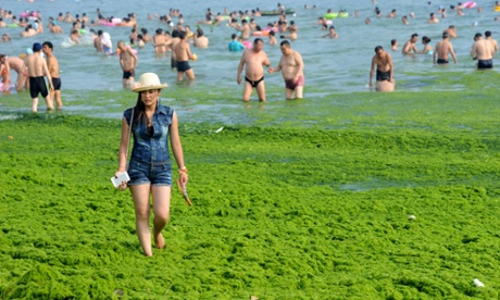 China’s Yellow Sea is turning green with massive growths of algae, which clog beaches and suffocate marine life. Industrial and agricultural discharges of nitrates and phosphates are the suspected cause.
