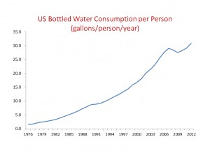 He writes that “. . . . [we are ignoring] the blindingly obvious reason why bottled water has become a boondoggle: Americans are thirstier than they used to be.