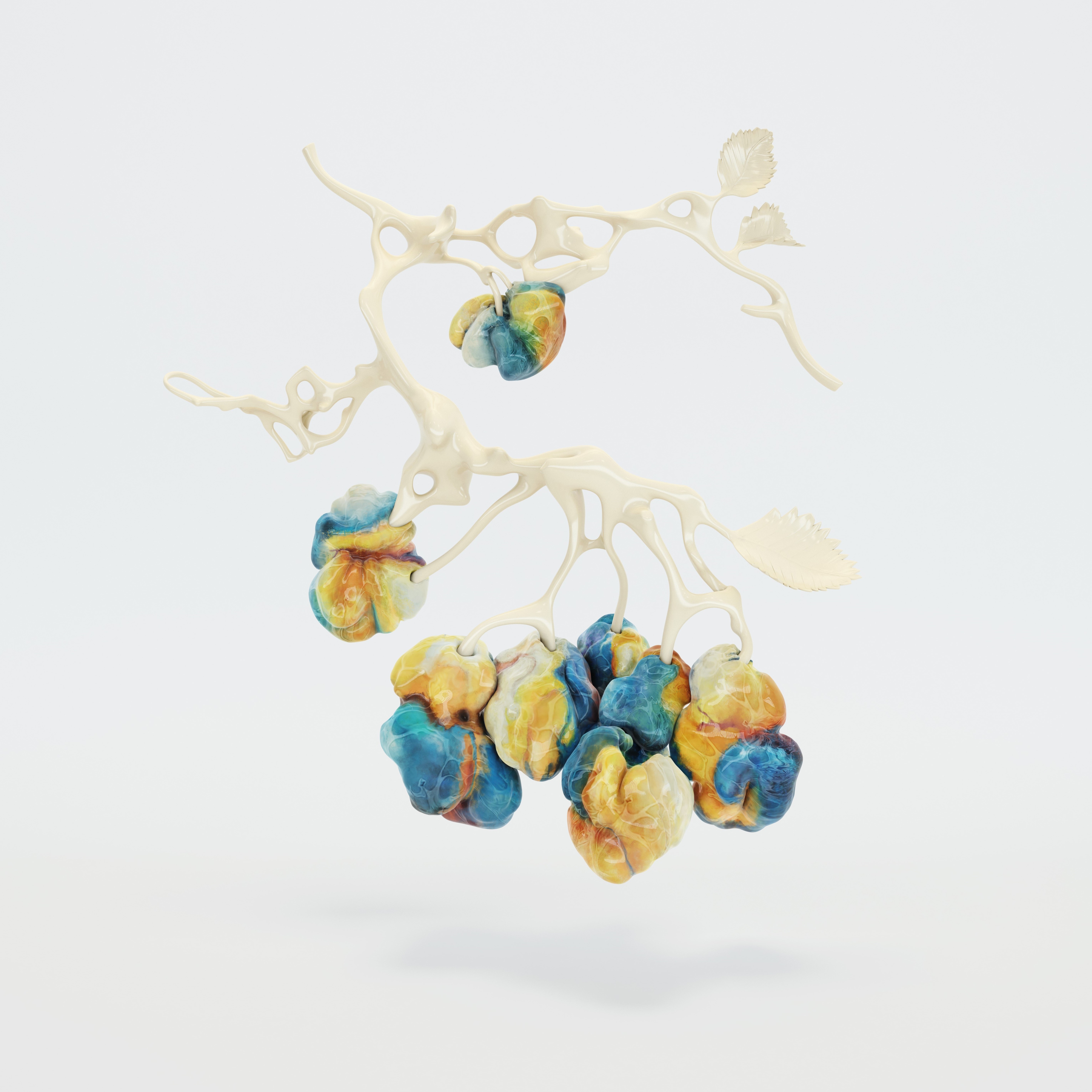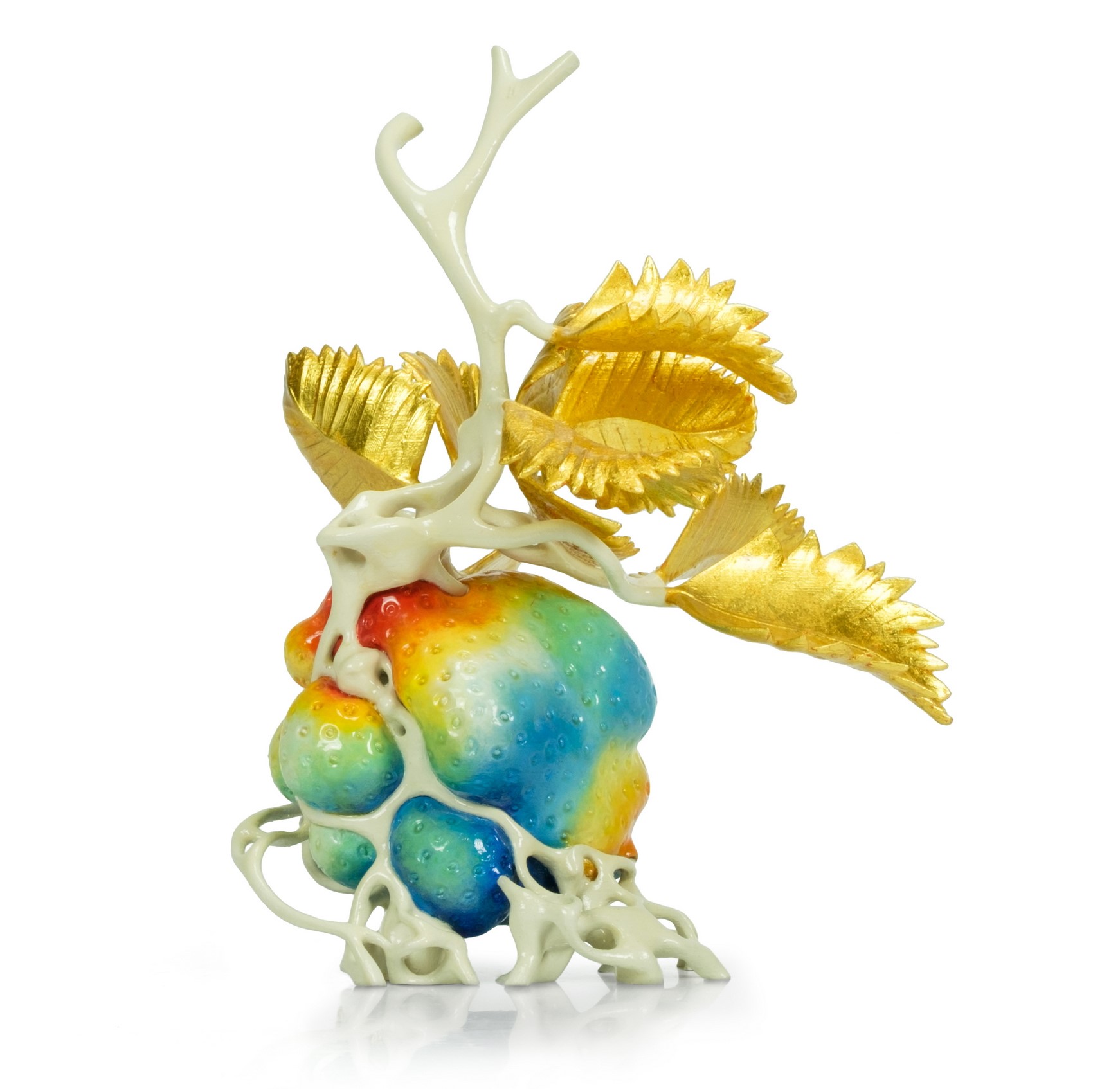 AELBWARTS is the modern version of the tradtional still life with fruit. In the seventeenth century, strawberries stood for humbleness because they grow low at the ground. This futuristic example stands miles away from humbleness. Proud it reaches for the sky combining the elegance of the leafs with the heavy blob form of the strawberry.