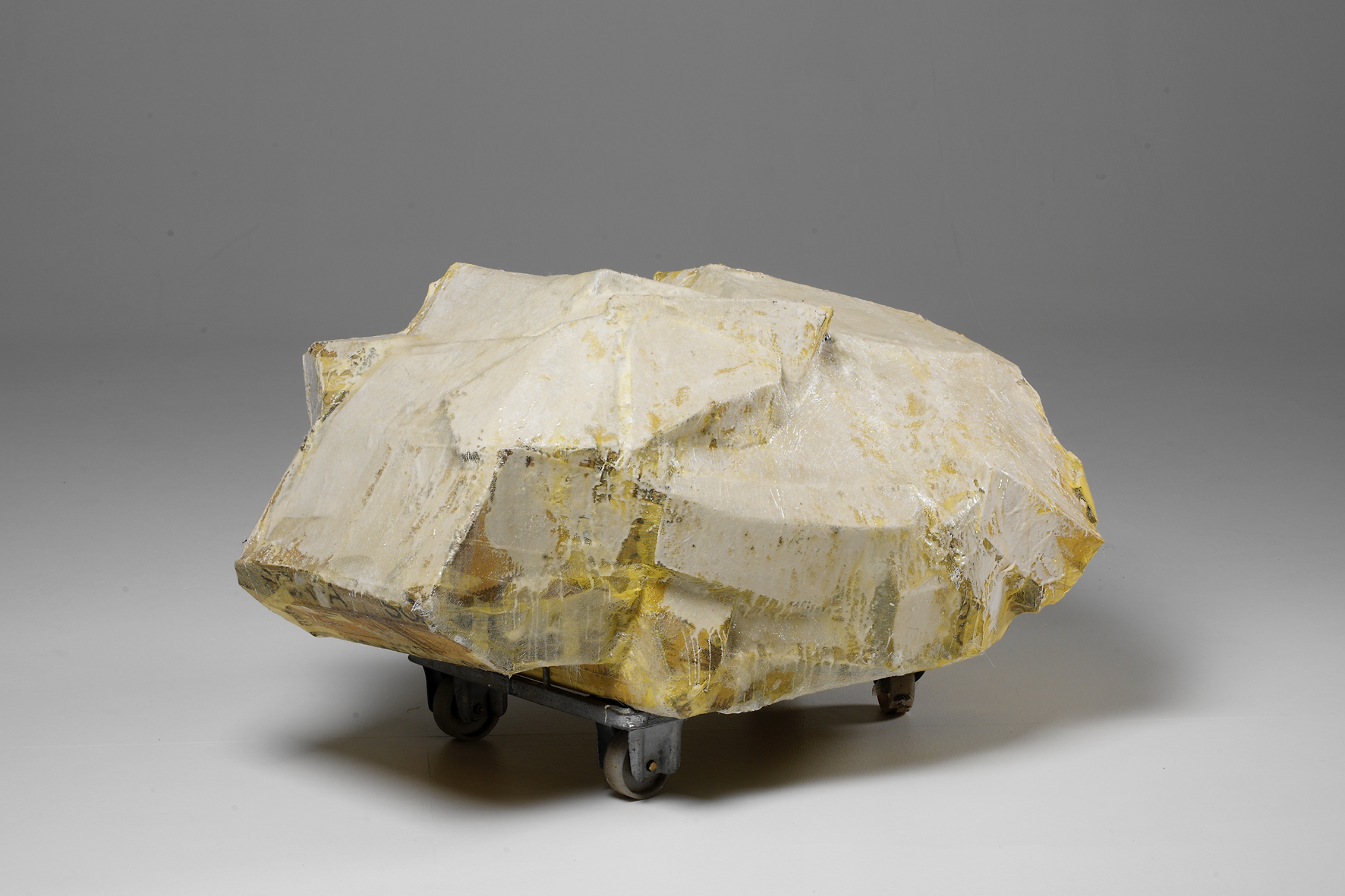 KOLBSTOR tells of a mental shift, in which Ervinck raised once fragmentary pieces of a sculpture to a pedestal, appointing them as finished works of art. In his student years, Ervinck sought for beauty and soul in the minimal, the worn out and in untreated, raw materials. KOLBSTOR is an homage to Franz West, an Austrian artist who has made artworks out of plaster, papier-mâché, wire, polyester, aluminium and ordinary materials.