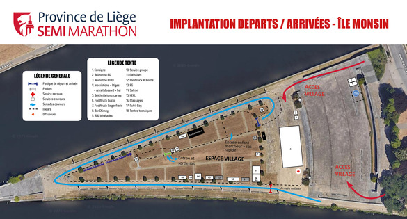 e village seront présents une consigne (réservation conseillée lors de l'inscription), des wc, un stand de massages (étudiants kiné de l'ULiège) et un parking vélo. Un chapiteau de 450m2 est également installé pour s’abriter, profiter du bar et manger un morceau.