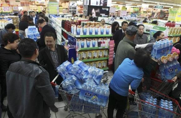 Benzene in China city water cuts supply.Tests conducted by environmental officials in the Chinese city of Lanzhou this week showed that tap water there contained 200 micrograms of benzene per liter — 20 times the national limit. Residents stocked up on bottled water.