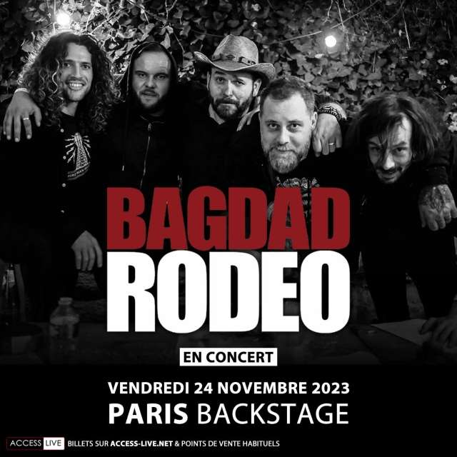 Après trois albums sortis respectivement en 2010 et 2013 et 2017 BAGDAD RODEO revient en 2022 avec un nouvel opus sobrement et logiquement intitulé « Quatre ». Parisien d'origine, le groupe à su conquérir son public à travers tout le territoire en enchaînant les concerts et en partageant l’affiche avec les grands noms du rock français comme No One is innocent, Les Fatals Picards, Les Wampas... dans des salles ou festivals de renom, L'Olympia, la Cigale, l’Élysée Montmartre, le Cabaret Sauvage, les Francofolies de Spa, les Rocktambules de Rousson, les nuits péplum d’Alésia, le New Morning...