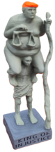 Incluindo o pódio, a escultura de cobre tem 2,5 metros de altura e retrata um Trump corpulento e nu, empoleirado arrogantemente sobre um jovem magro de tênis e bermuda — uma imagem de desequilíbrio de poder e negação. Em uma das mãos, Trump segura um taco de golfe; na outra, uma balança da justiça. Ao lado dele, uma bola de golfe com o formato do planeta Terra jaz no chão.