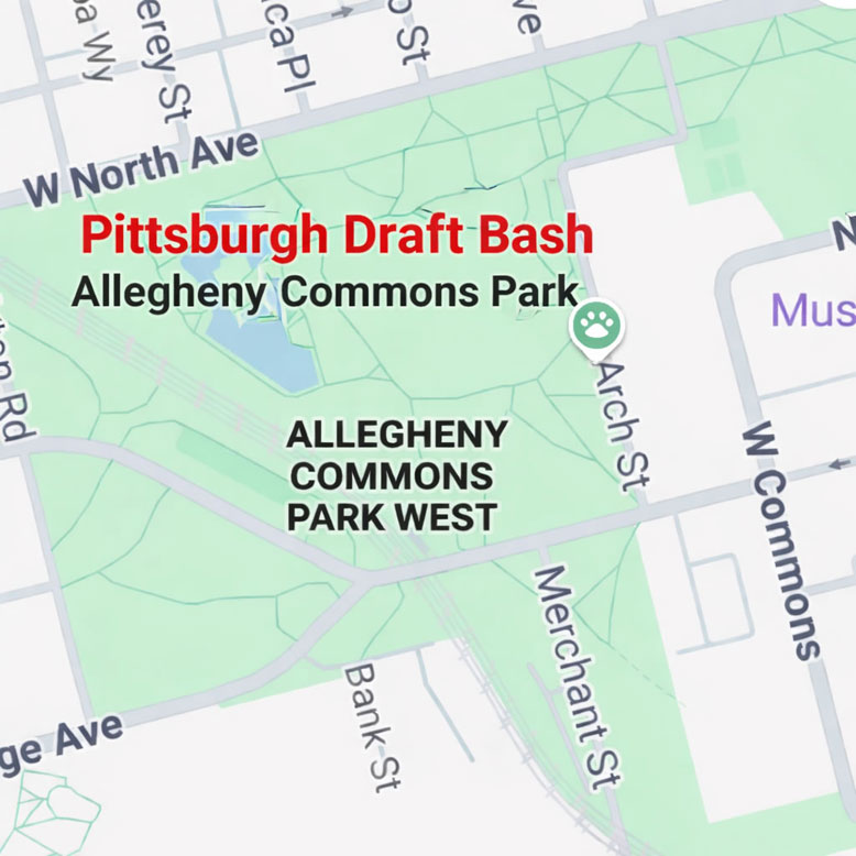 The Draft Bash will be held at Allegheny Commons Park West, off W. Ohio & Brighton Rd, 15212, across the street from famous icey ball company GUS & YIAYIA, and run from 11am-8pm Daily