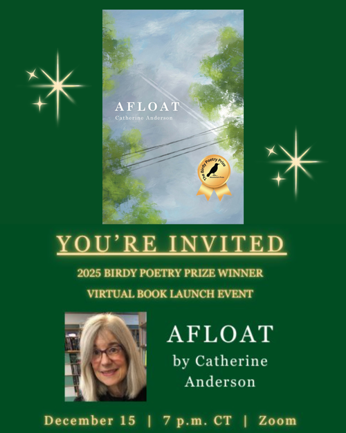 TONIGHT! Meadowlark Press is holding a virtual launch for Catherine Anderson’s new book Afloat, winner of the Birdy Poetry Prize, on December 15 via Zoom at 7pm (CT).