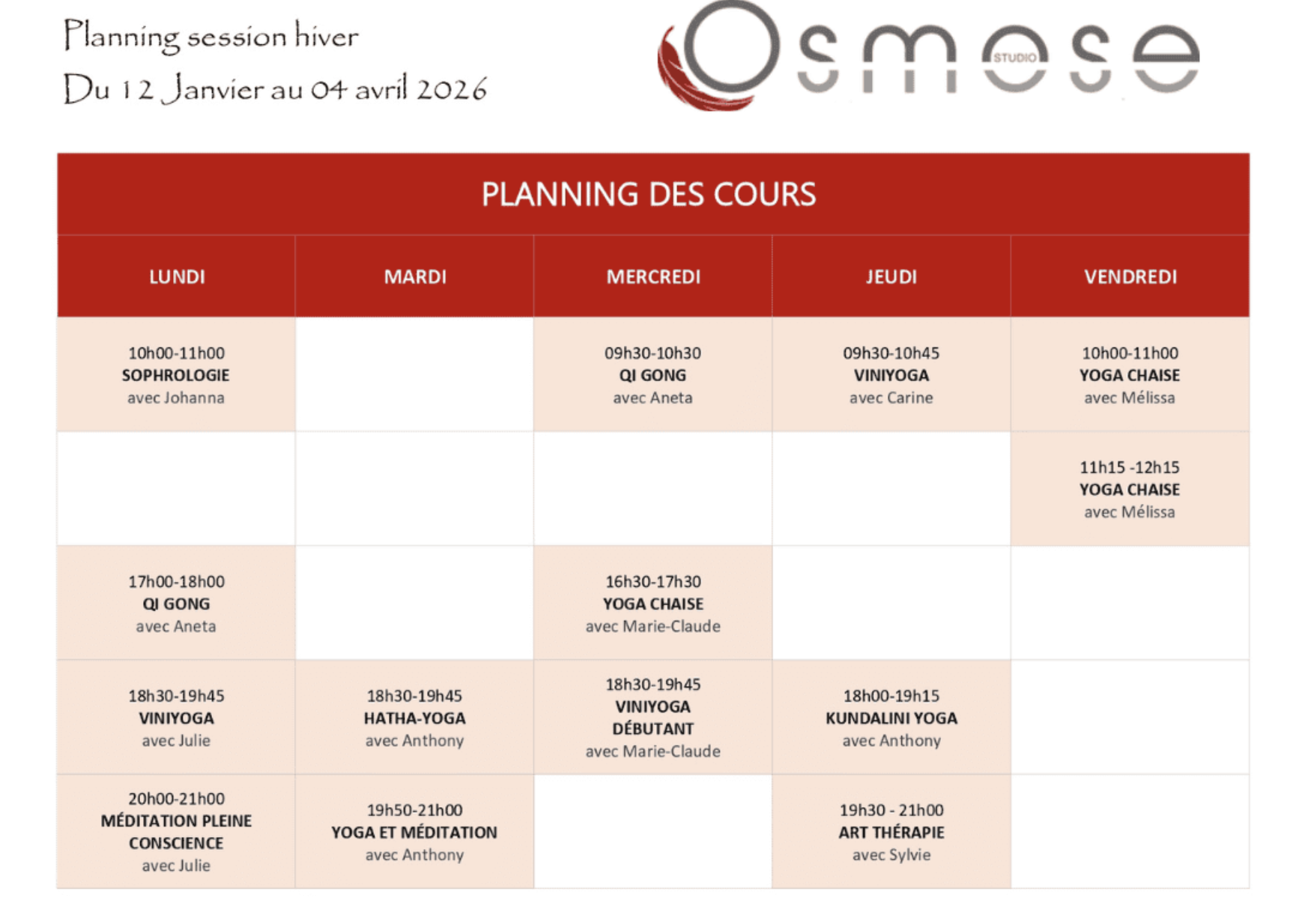 À partir du 12 janvier à Osmose Studio