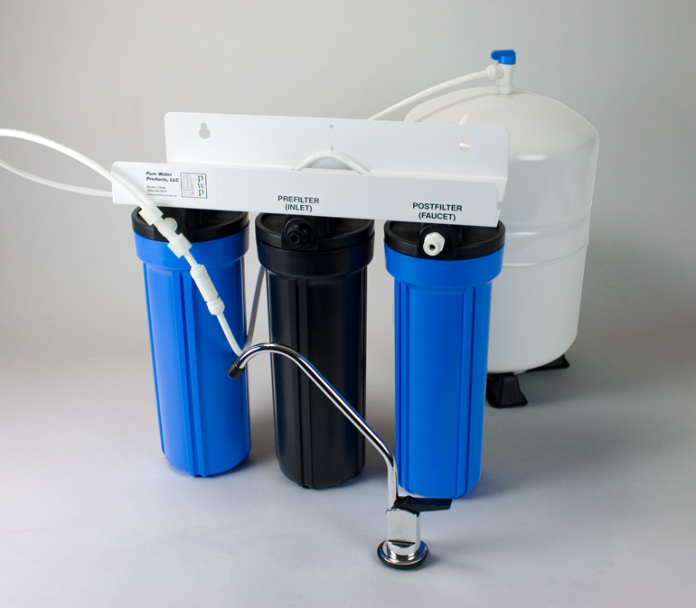 The Enhanced Performance Fluoride Filter uses a standard reverse osmosis tank to store fluoride-free water for fast delivery to the faucet.