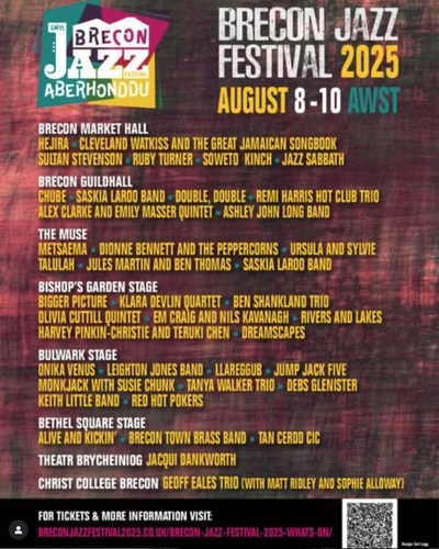 August 8 to 10 – Brecon Jazz Festival, Wales, UK