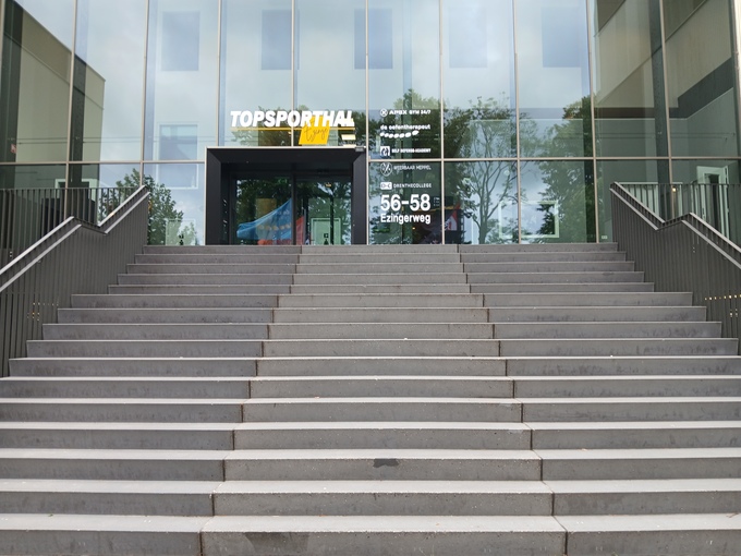 Dan de startlocatie: hier was volgens ons echt niets mis mee, parkeren in de overdekte garage en buiten, en gelijk om de hoek de startlocatie. Wel even een paar trappen op he? Maar de lift was ook beschikbaar, geloof trouwens dat niemand daar gebruik van heeft gemaakt. We denken dat het goed was om een consumptiebon te verstrekken die bij de startlocatie gebruikt kan worden. Zo heeft de uitbater ook inkomsten en kunnen we er nog eens weer terecht. De mensen van de Topsporthal waren dan ook zeer tevreden en dus wij ook.