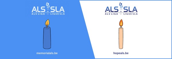 Brûlez une bougie commémorative bleue pour ceux qui ont tout donné contre la SLA et à qui nous avons dû dire au revoir. Ne les oubliez pas en brûlant une bougie commémorative ! Car ce n'est pas parce qu'ils ne sont plus parmi nous qu'ils ne sont plus dans nos cœurs.