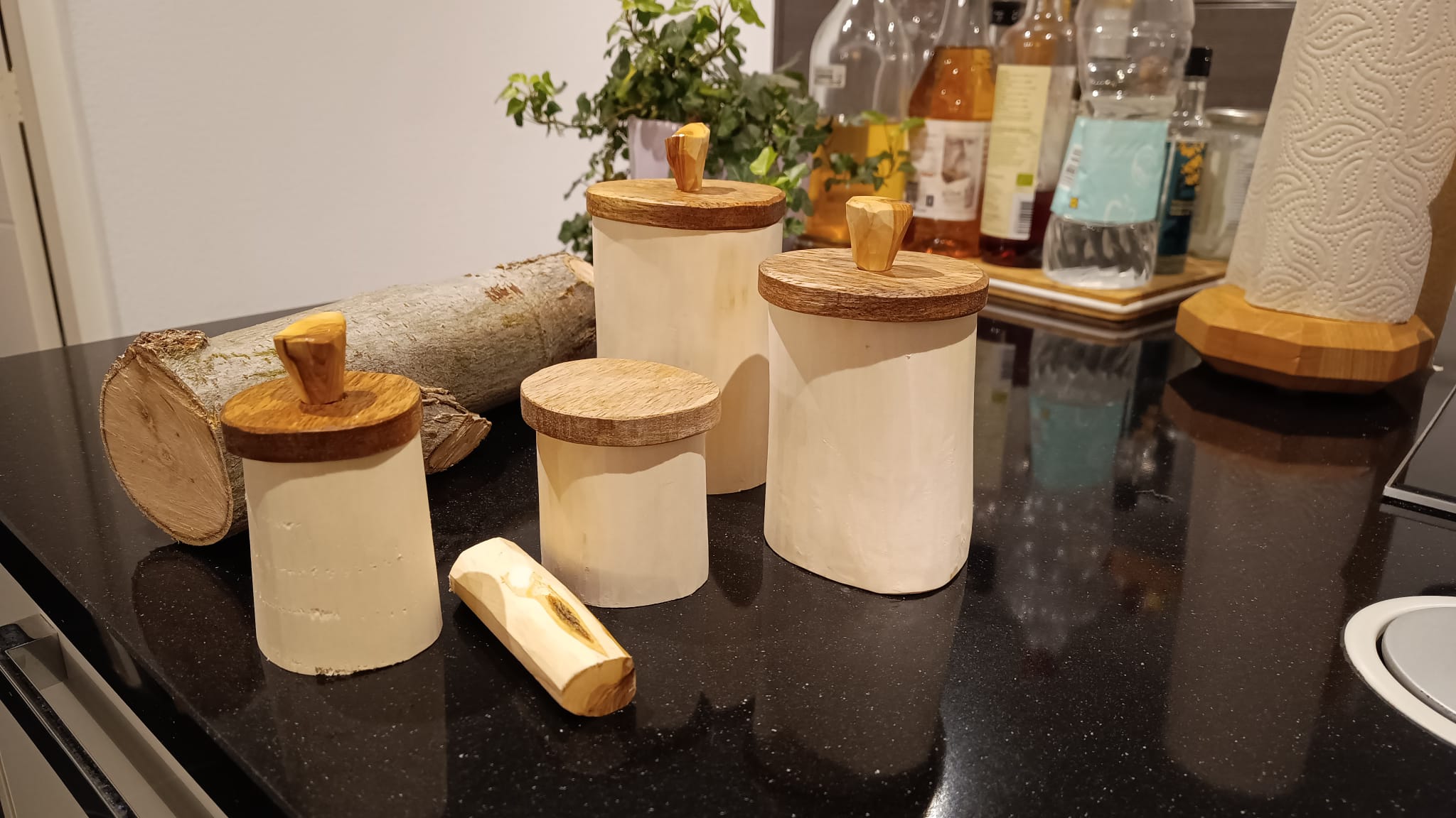 Zoals Jaap; die me regelmatig verrast en verblijdt met weer een verse creatie (stuurt ie dan via een appje...). Hij maakte bijvoorbeeld deze Krimppotjes hieronder.... (waar je dan weer geen schaafbok maar een scherpe guts voor nodig hebt).