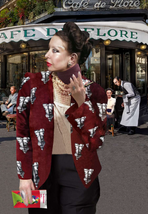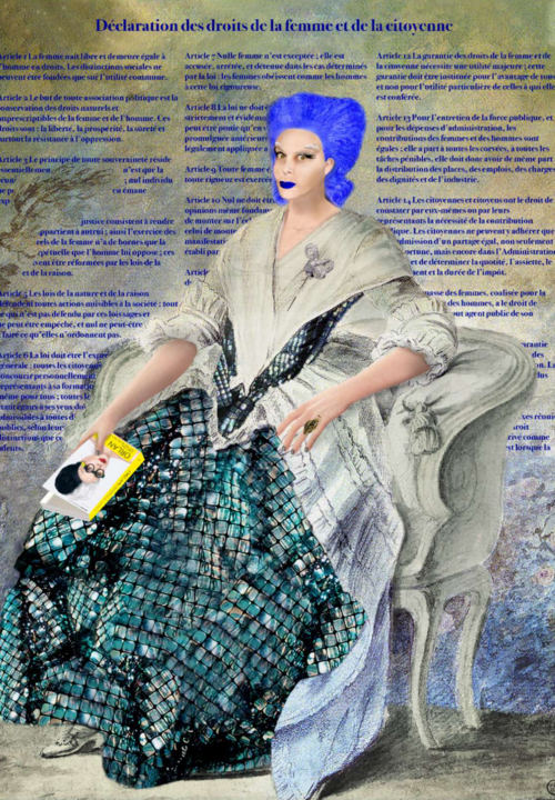 Always mixed with humor, sometimes with parody or even grotesque, her work questions the phenomena of society and challenges the pre-established codes.