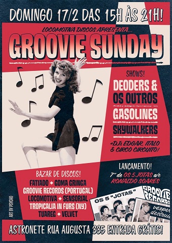 No domingo 17/2 a LOCOMOTIVA DISCOS apresenta evento especial no ASTRONETE: é a GROOVIE SUNDAY, festa realizada durante à tarde e começo da noite (15h às 21h) c/ mesinhas na calçada, bazar de discos, DJs, pocket-shows e, o melhor, ENTRADA GRÁTIS! A atração principal é EDGAR RAPOSO, dono da portuguesa GROOVIE RECORDS e especialista em sons dos anos 1960. Ele aproveita sua passagem pelo Brasil p/ vender discos do selo e discotecar.