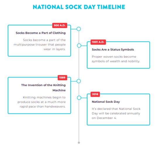National Sock Day was declared as December 4th in recognition of their significance to all of us as well as two corresponding events... the closing of the first revival of the Broadway musical "On Your Toes", on December 4th, 1954. The musical incorporated ballet. The second "toe-tapping" event commemorates the final concert of the country music mother-daughter singing duo, The Judds, in 1991. More info: #NationalSockDay