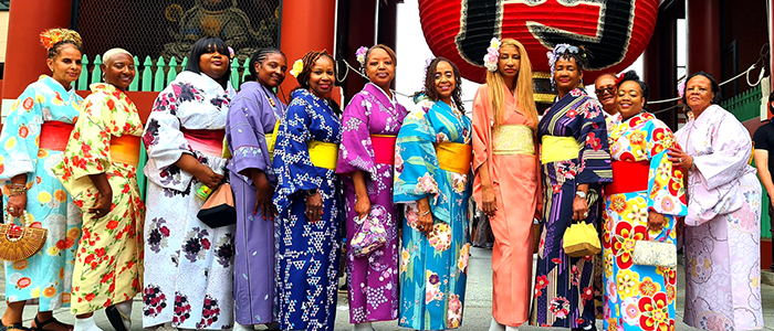 Beneath the outer kimono lies the nagajuban, whose slightly raised collar, our instructor explained, is meant to remind the wearer to carry herself with quiet grace. Whether or not that is an old rule, it certainly felt true. As we dressed, our movements softened, our postures lengthened, and we began to embody the gracefulness the kimono was designed to inspire. You can wear a kimono anywhere in the world, but there is something about wearing one in Japan that is transformative. You fell the culture.