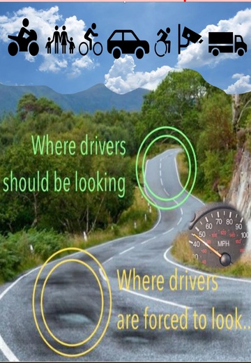 The state of the roads and the fear of exceeding the speed limit are encouraging motorists to spend too much time looking at their speedometer and observing a few feet ahead watching out for pot holes rather than scanning the road ahead?