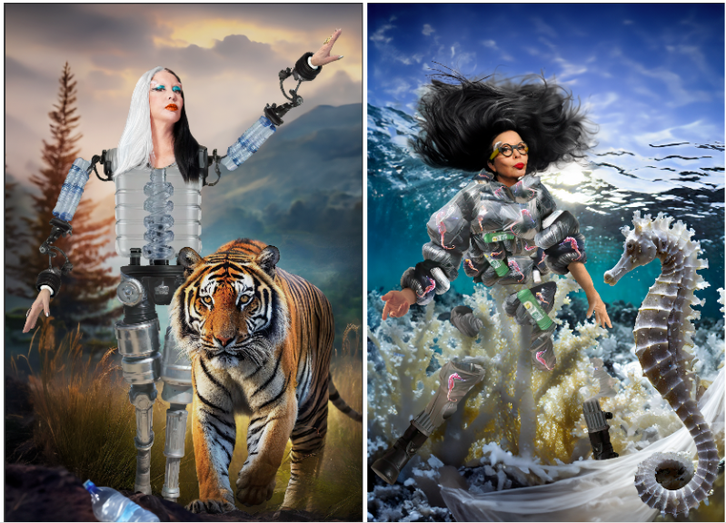 THE ENDANGERED AFRICAN FOREST ELEPHANT AND NEW ROBOTS MADE FROM RECYCLED OBJECTS AND MATERIALS